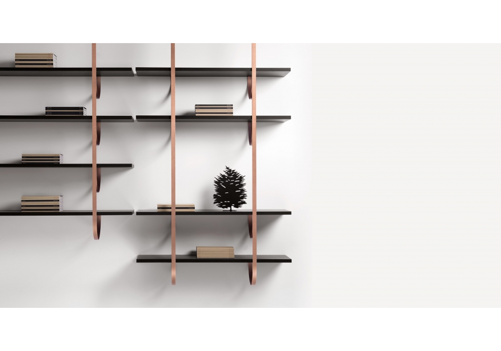 Talea von Lucidi Pevere für DeCastelli entworfen, ist ein Wand Bücherregal mit Metallstützen und Holzregalen, mit der Möglichkeit, die Anzahl der Regale zu modulieren. Komplett mit Wand- und Deckenbefestigung. Verfügbar in mehreren Ausführungen und Abmessungen.