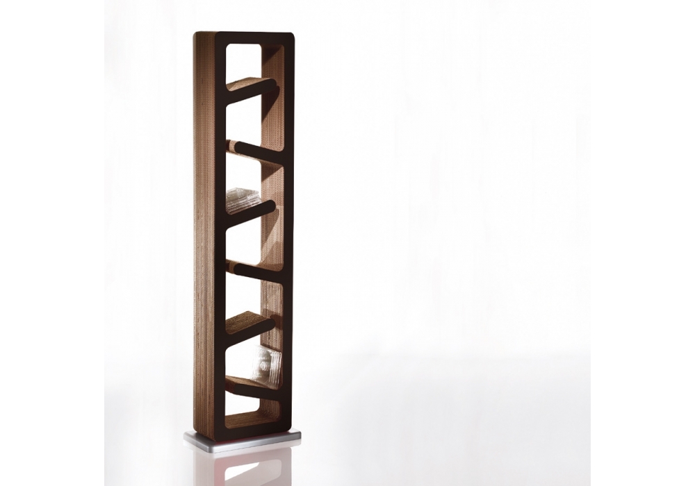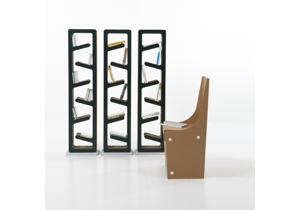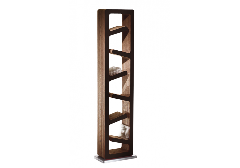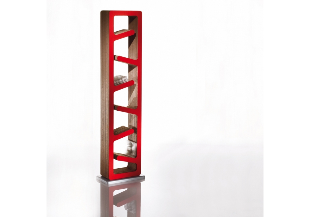 Traffic designed by Kubedesign is a cd/dvd racks, bookcase made of three-dimensional cardboard with wooden base. Finish in white, black or red shockproof material.