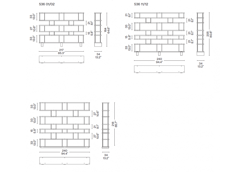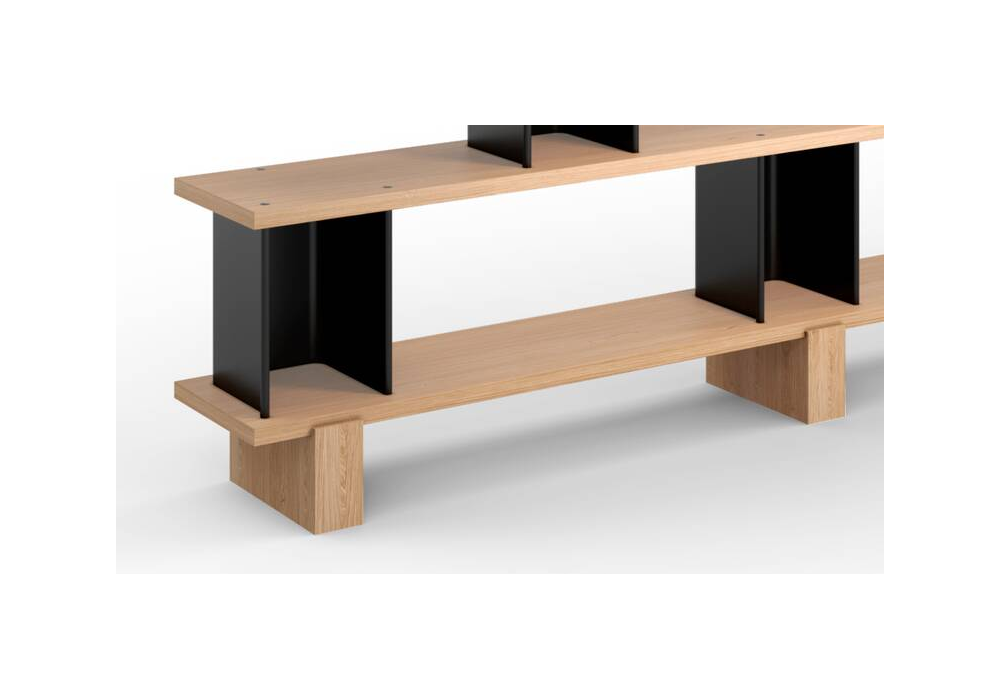 Nuage à Plots von Charlotte Perriand für Cassina entworfen, ist ein Bücherregal aus Regalen aus natürlicher oder schwarz gebeizter Eiche und vertikalen Elementen aus eloxiertem oder lackiertem Aluminium. Verfügbar in mehreren Ausführungen und Abmessungen.