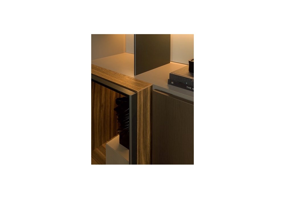 505 UP von Nicola Gallizia für Molteni&C entworfen, ist ein flexibles modulares System mit den Eigenschaften eines fertigen Möbelstücks. Technologische Innovation und exklusive Patente verbergen sich hinter einer Ästhetik mit starker ausdrucksstarker Persönlichkeit und einzigartiger Designflexibilität.