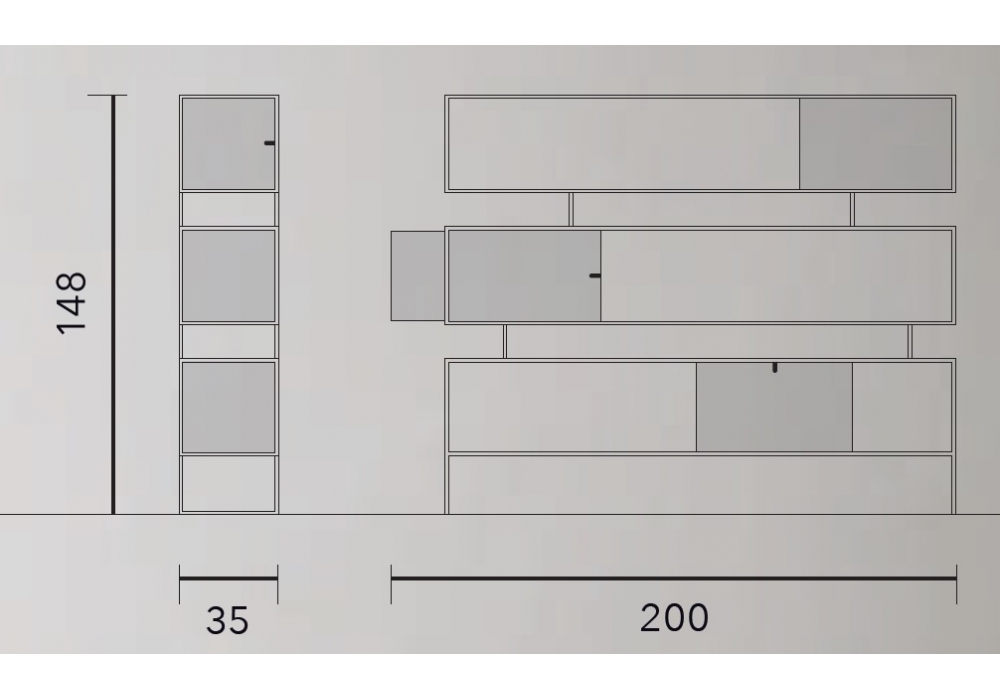 Dedalus von Giacomo Moor für Memphis Milano entworfen, ist ein Bücherregal bestehend aus drei identischen überlappenden Eisenkonstruktionen mit drei Volumen aus Nussbaumholz, zwei mit Flügeltüren und eines mit Klappe. Limitierte Auflage von 25 Stück.