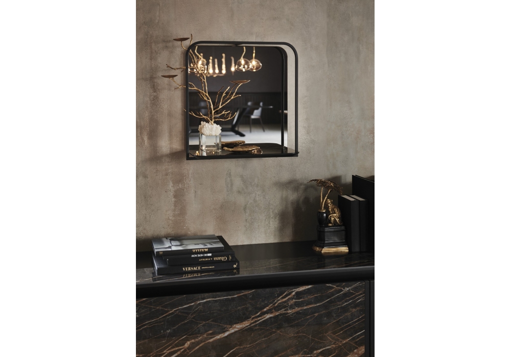 Tresor von Paolo Cattelan für Cattelan Italia entworfen, ist ein Wandregal in zwei Größen erhältlich. Struktur aus Stahl lackiert titan oder schwarz gaufriert und Glas Bronze verspiegelt.