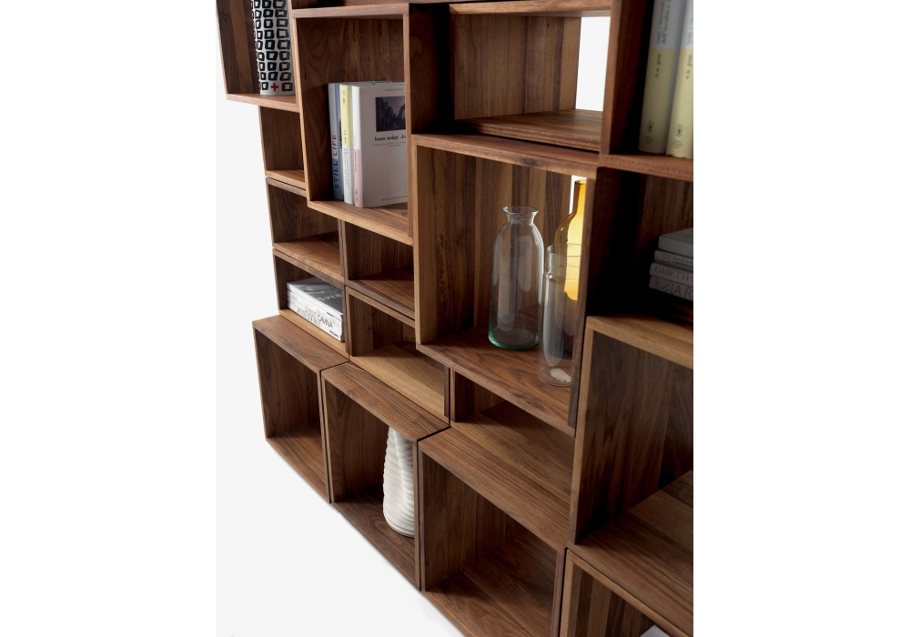 Freedom von Riva 1920 entworfen, ist ein Bücherregal aus Massivholz, das aus stapelbaren modularen Modulen besteht, die durch spezielle Montagebeschläge miteinander verbunden werden können. Flexibel je nach Einrichtungsbedarf, sieht die Möglichkeit vor, Rückenlehnen, Türen und Schubladen einzusetzen, die mit Schwalbenschwanzverbindungen zusammengebaut und mit einem Push-Pull-Öffnungssystem und Metallführungen ausgestattet sind. Erhältlich mit festem oder schwenkbarem TV-Fach, ausgestattet mit Kabelmanagementsystem. Auf Wunsch ist es mit "doppelseitigen" Elementen erhältlich und kann als Trennelement innerhalb der Umgebung verwendet werden.