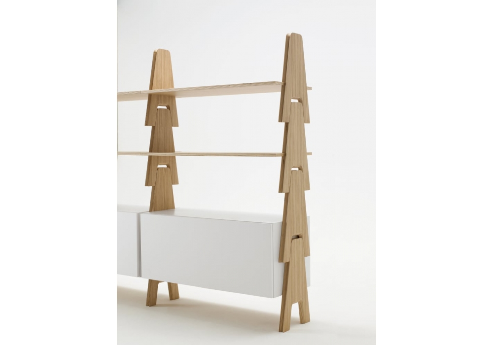 Cavalletto von Angelo Mangiarotti für Agapecasa entworfen, ist ein modulares Bücherregal aus stapelbaren vertikalen Elementen aus Birkensperrholz in verschiedenen Ausführungen.