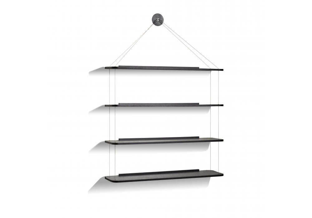 Libreria Pensile von Achille & Pier Giacomo Castiglioni für Karakter entworfen, ist ein hängendes Bücherregal mit Regalen aus massiver Eiche und Stahldrähten. Verfügbar in 2 Ausführungen.