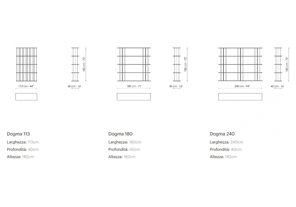 | Abmessungen | 240 x 40 x H 182 cm; 180 x 40 x H 182 cm; 113 x 40 x H 182 cm. |