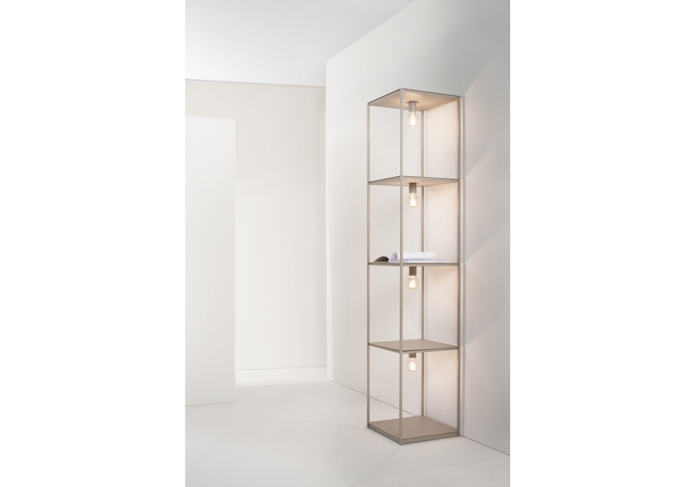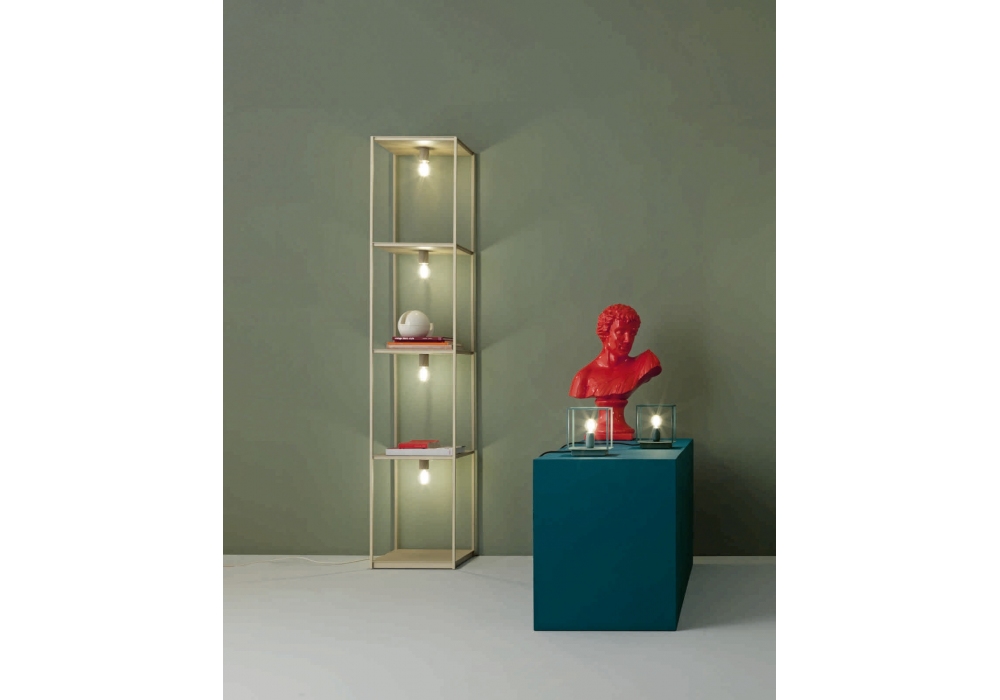 Box von Franco Zavarise für Zava entworfen, ist ein Bücherregal aus Eisen. Die Lichtquellen befinden sich unter jedem Regal, das von einem Metallrahmen umgeben ist, der die Formen hervorhebt. Verfügbar in verschiedenen Ausführungen.