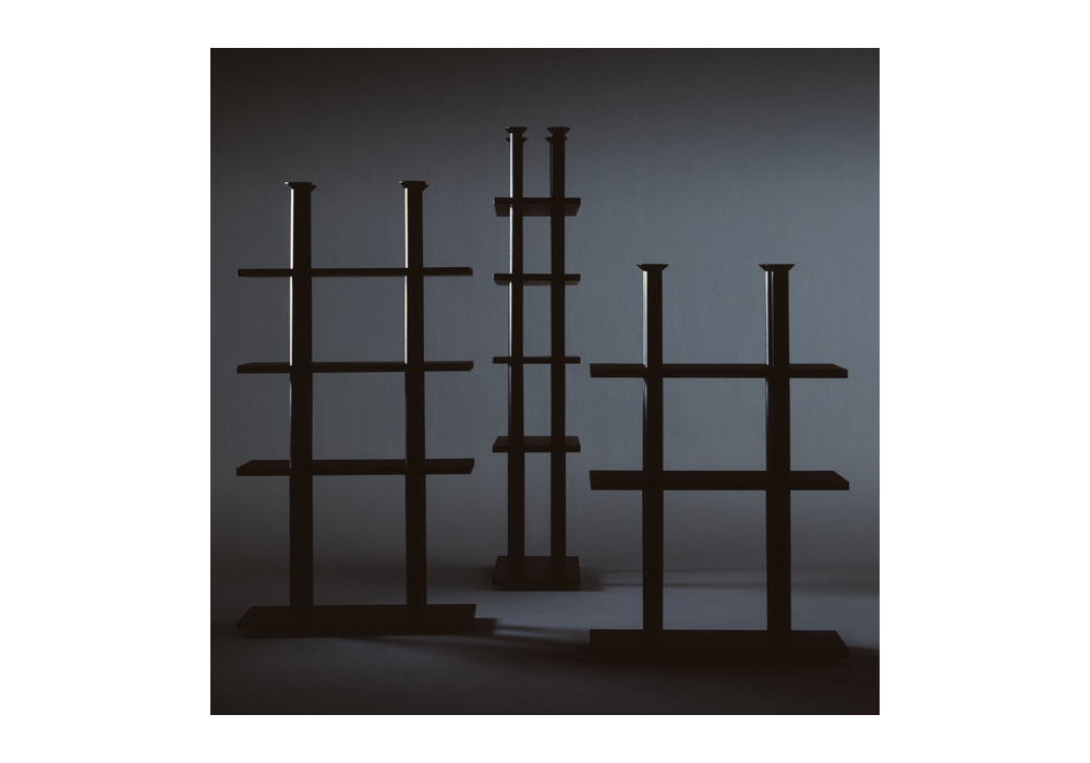 Peristylo von Oscar Tusquets für BD Barcelona entworfen, ist ein modulares Bücherregal aus massiver Esche und gedrechselten vertikalen Pfosten aus schwarz gebeiztem Holz. In verschiedenen Abmessungen verfügbar.