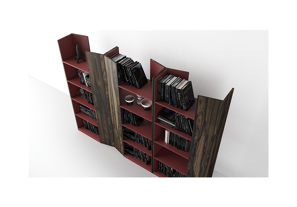 Vertigo von Bellavista & Piccini für Minotti Italia entworfen, ist ein freistehendes Bücherregal aus Spanplatte mit fünf Regalen. Erhältlich in verschiedenen Ausführungen und in der rechten oder linken Version.