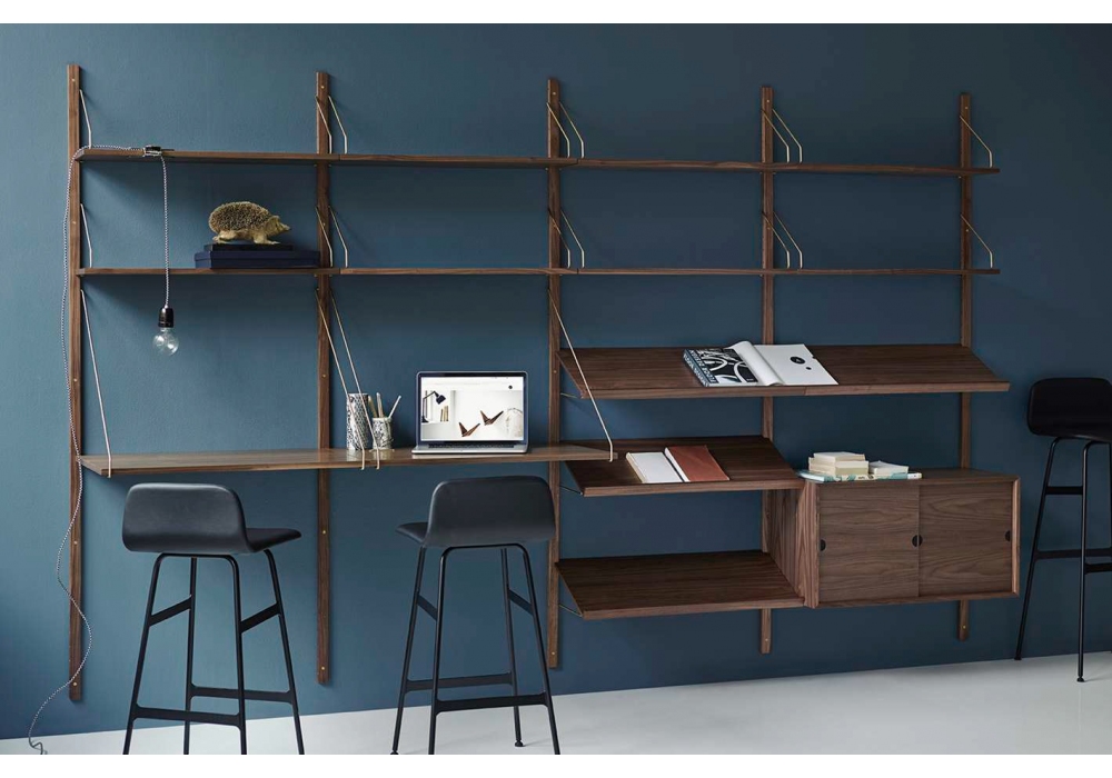 Royal System von Poul Cadovius für Dk3 entworfen, ist ein modulares System aus MDF und Massivholz, Kleiderbügeln und Regalstützen aus Edelstahl oder Messing. Erhältlich in verschiedenen Ausführungen und mehreren Konfigurationen.