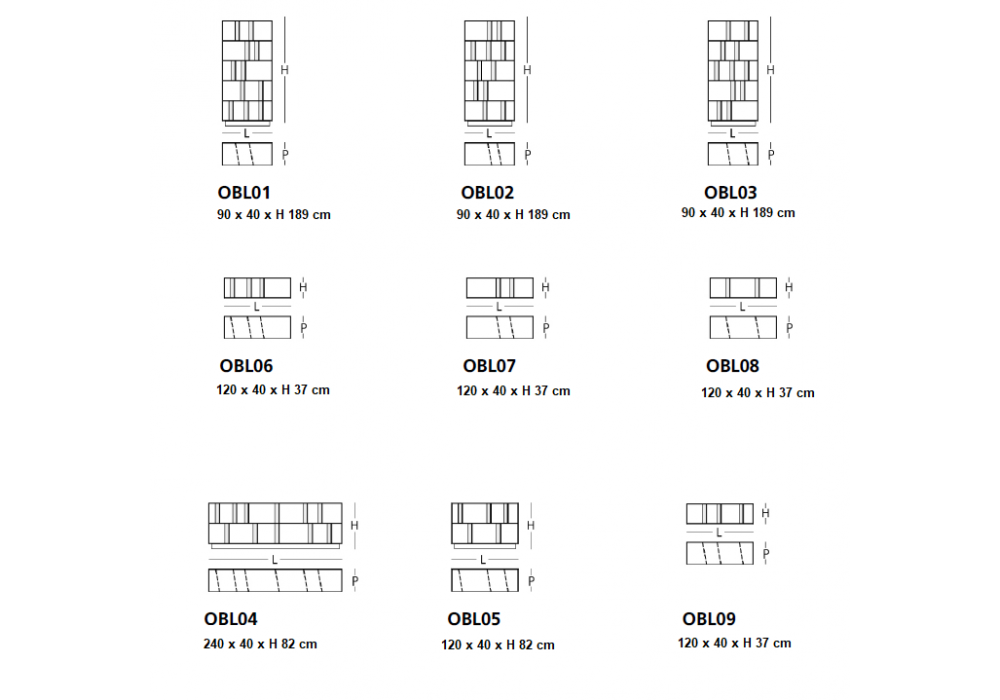| Abmessungen | 90 x 40 x H 189 cm; 240 x 40 x H 82 cm; 120 x 40 x H 82 cm; |