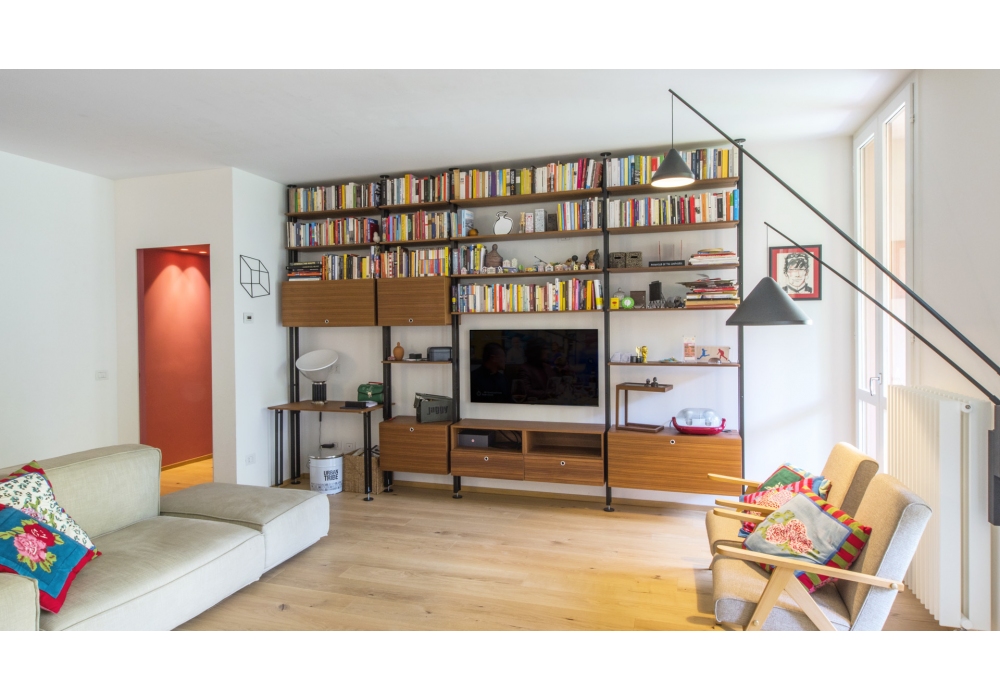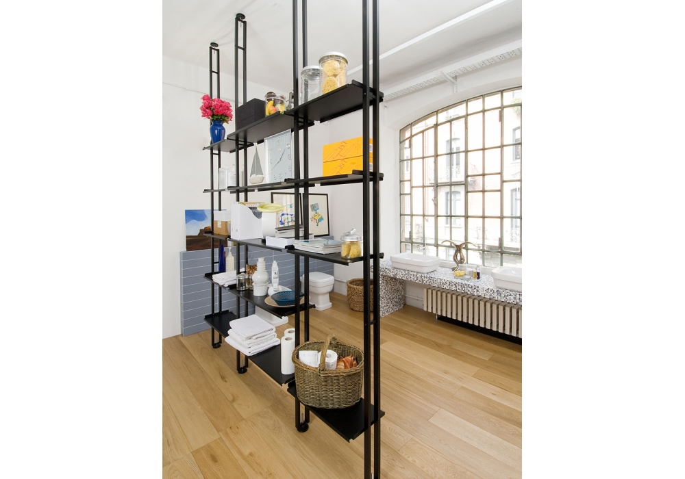K2 von Kriptonite entworfen, ist ein Druck-/Wandsystem aus vertikalen Aluminiumpfosten, die durch Druck zwischen Boden und Decke befestigt werden. Kombiniert mit Regalen und Behältern verschiedener Art lassen sich so Einrichtungslösungen für jeden Raum im Haus schaffen, vom Wohnbereich bis zum Schlafbereich, vom Büro bis zu Ausstellungsräumen wie Geschäften und Showrooms.