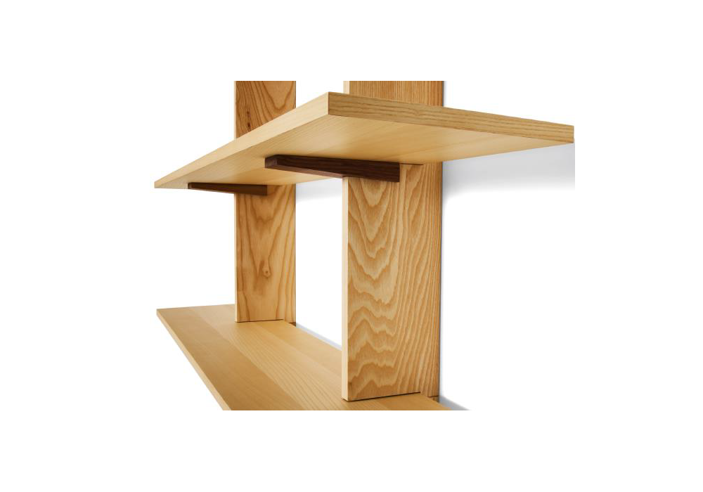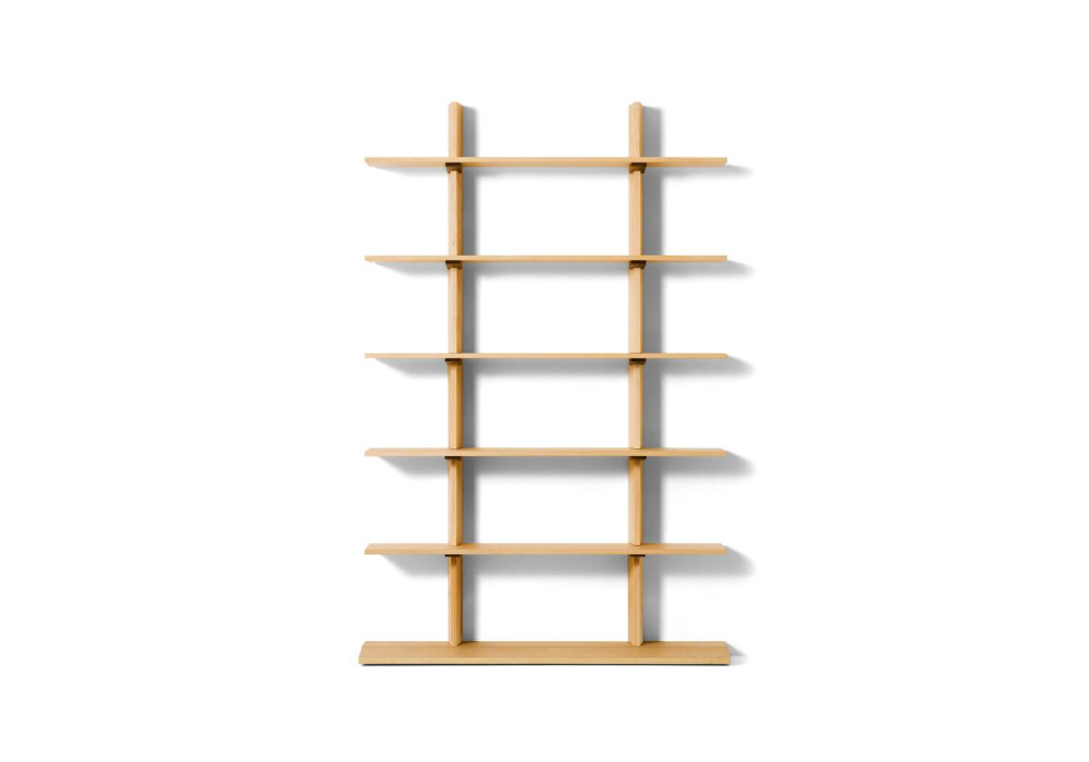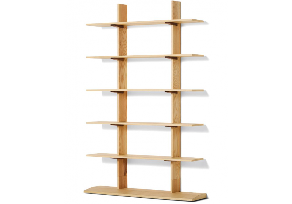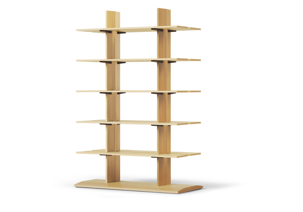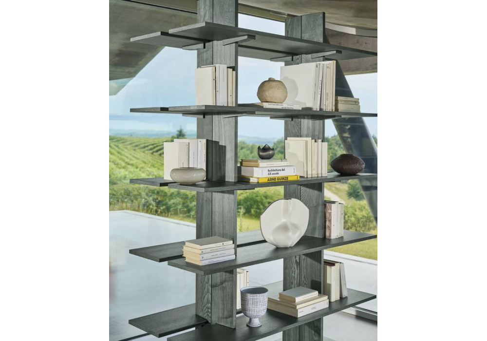 FF.Spine von Formafantasma für Cassina entworfen, ist ein Bücherregal, das in zwei Versionen erhältlich ist: mit Bodensockel und Wandbefestigung oder als doppelseitiges freistehendes Modell. Hergestellt aus massiver Esche oder Canaletto-Nussbaum.