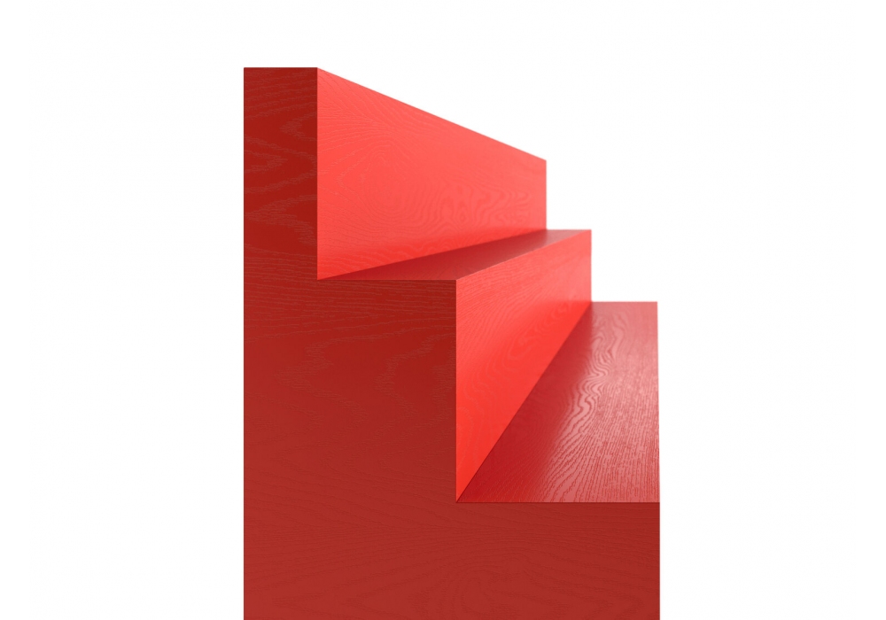 Red Bookcase von Rejo Studio für Cappellini entworfen, ist ein freistehendes Bücherregal aus rot offenporig lackiertem Holz. Die beiden Sockel sind für einen leichteren Transport zerlegbar.