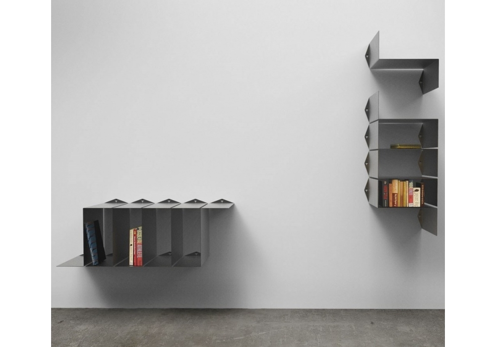 Z-Shelf, von Niels Bendtsen für Moroso entworfen, ist ein modulares Regalsystem aus lackiertem Stahlblech. Verfügbar in rechter oder linker Ausführung.