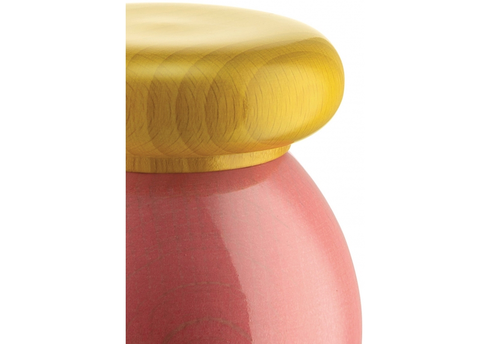 ES18 von Ettore Sottsass für Alessi entworfen, ist eine Salz-, Pfeffer- und Gewürzmühle aus Buchenholz. Erhältlich in drei Farbkombinationen.