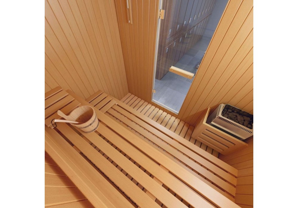 Nuvola B von Glass Lab entworfen, ist eine Biosauna. Ofen mit Steine und verspundeten Holzabdeckung, integrierten Anfeuchter, Sitzbänke, Fußstütze, interne Beleuchtung, Sanduhr, Hygrometer, Thermometer. Einschaltprogrammierung, Kontrolle und Einstellung der Temperatur und der Zeit, elektronischen Uhr, Feuchtigkeitsregulierung und Wasserstand Warnung. Rauchfarbe Glas und LED-Farblichttherapie wie Zubehör.
