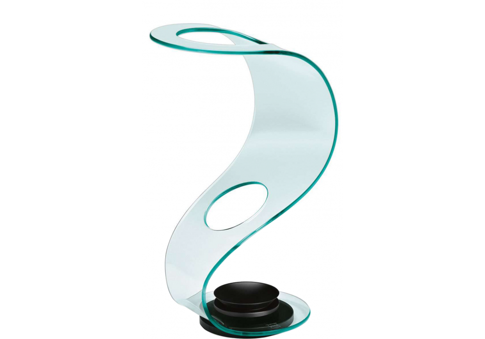 Cobra von Elio Vigna für Fiam entworfen, ist ein Schirmständer aus gebogenem Glas und einem schwarz lackierten Metallsockel.