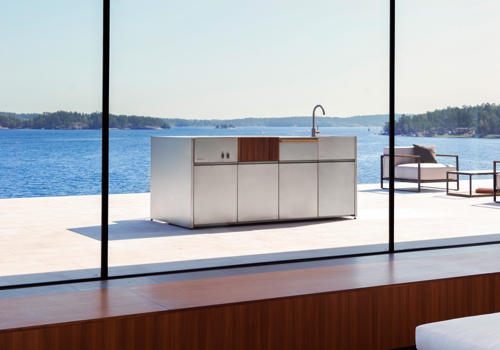 Cutting Board von Broberg & Ridderstråle für Röshults entworfen, ist ein Schneidbrett aus Teakholz gemacht. Modul für unsere Kücheninsel oder andere individuelle Outdoor Küchen.