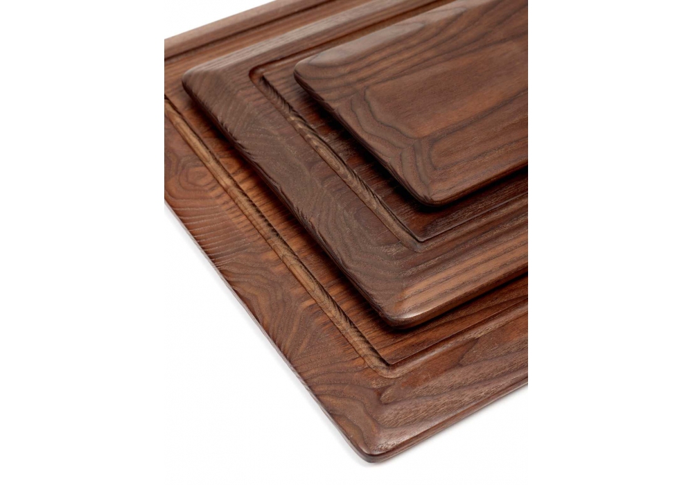 Pure Wood von Pascale Naessens für Serax entworfen, ist ein Schneidebrett in viereckiger Form mit bearbeiteten und abgerundeten Ecken, vollständig aus dunklem Eschenholz.