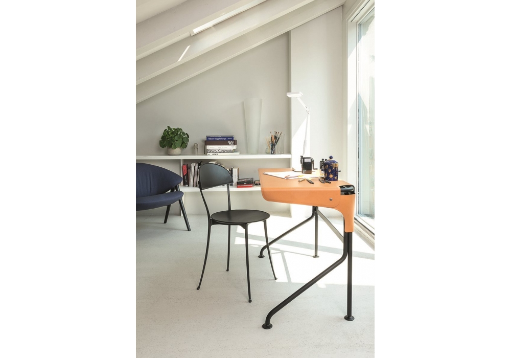 2740 Tucano von Monica Förster für Zanotta entworfen, ist ein Schreibtisch mit Tischplatte aus pigmentiertem Leder 90 und Gestell aus mattschwarz lackiertem Stahl.