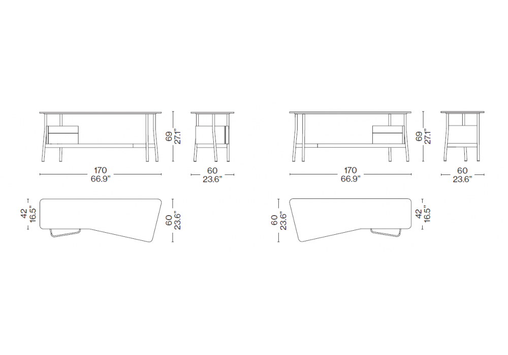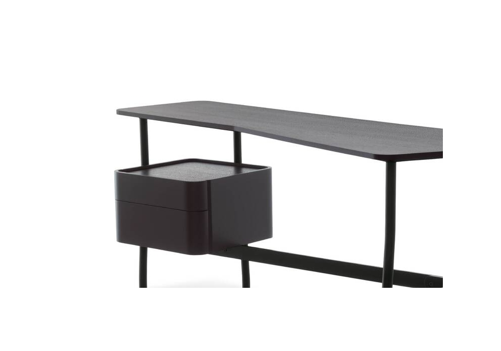 L40 Sled von Rodolfo Dordoni für Cassina entworfen, ist eine Dunkel gebeizter Eichenschreibtisch mit verbreiterter Tischplatte rechts oder links und einem Schubladenelement rechts oder links inkl. mit integrierter Ablageplatte.