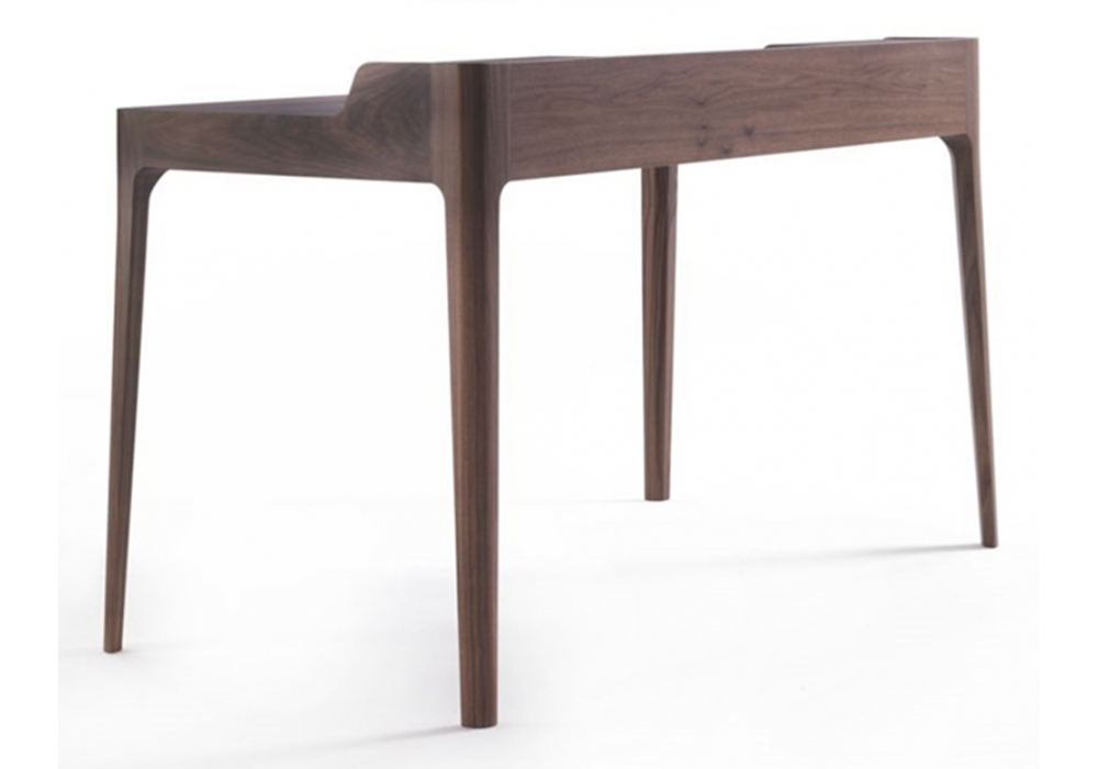 Saffo, von Carlo Ballabio für Porada entworfen, ist einer Schreibtisch mit einer Schublade aus massivem Nussbaum Canaletta, mit Ablage und versteckter Kabeldurchführung. Schreibunterlage aus Cuoietto verfügbar in verschiedenen Ausführungen.