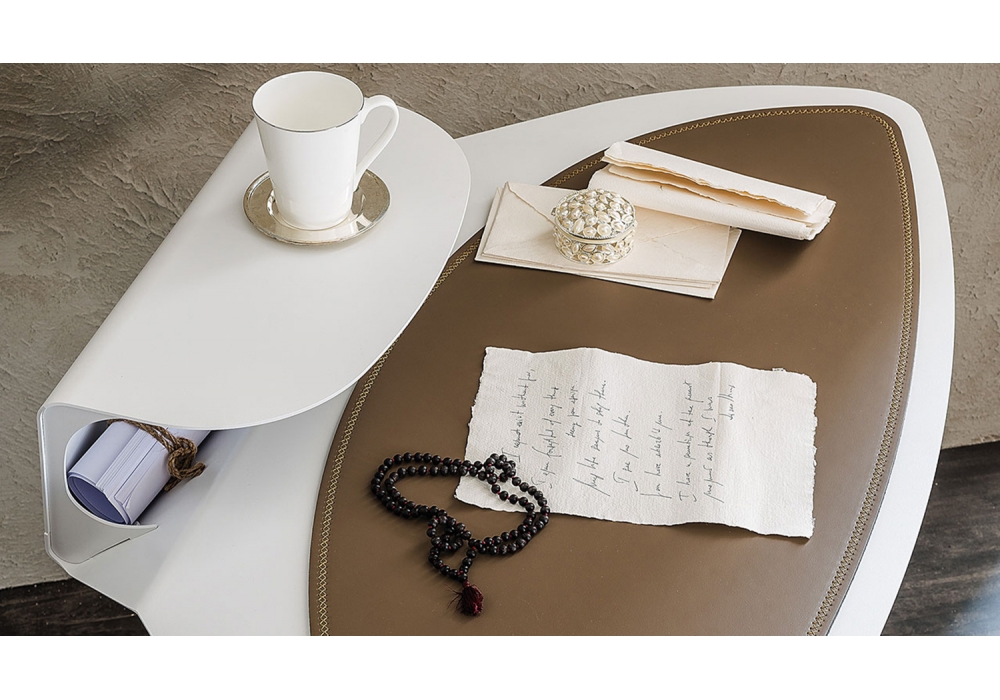 Storm, von Andrea Lucatello für Cattelan Italia entworfen, ist einer Schreibtisch aus weiß, Titan oder graphite gaufriert lackiertem Stahl. Pad mit Leder bezogen verfügbar in verschiedenen Ausführungen.