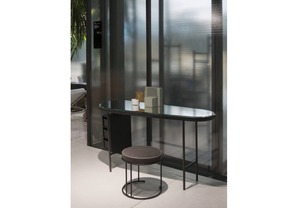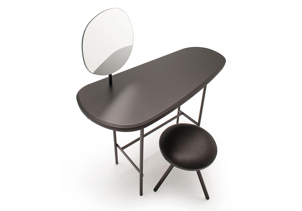 Pebble Vanity von Lanzavecchia & Wai für Living Divani entworfen, ist ein Schreibtisch mit Spiegel und Oberseite verfügbar in verschiedenen Ausführungen. Struktur aus Stahl, dunkel grau lackiert. Auch verfügbar in 2 Modelle: mit oder ohne Schubladen.
