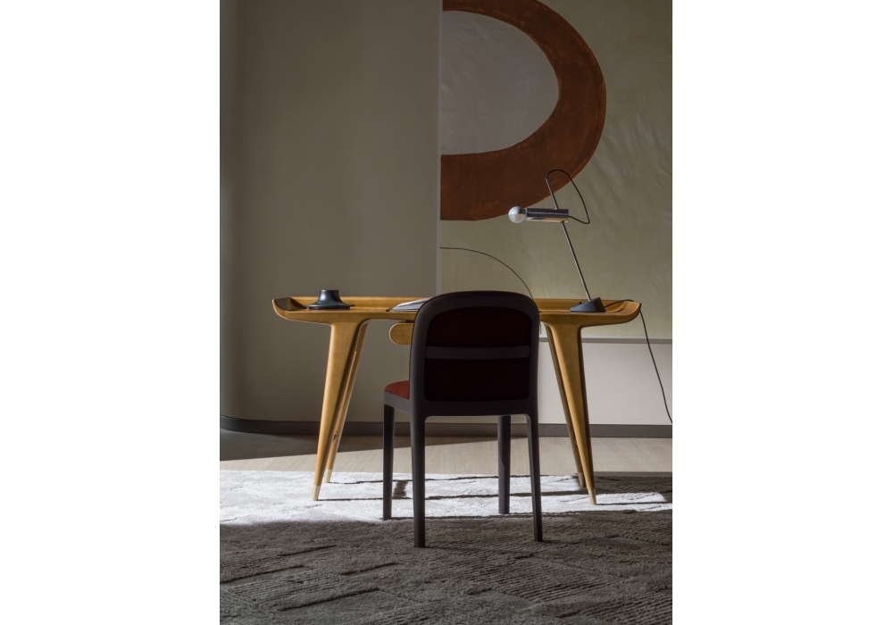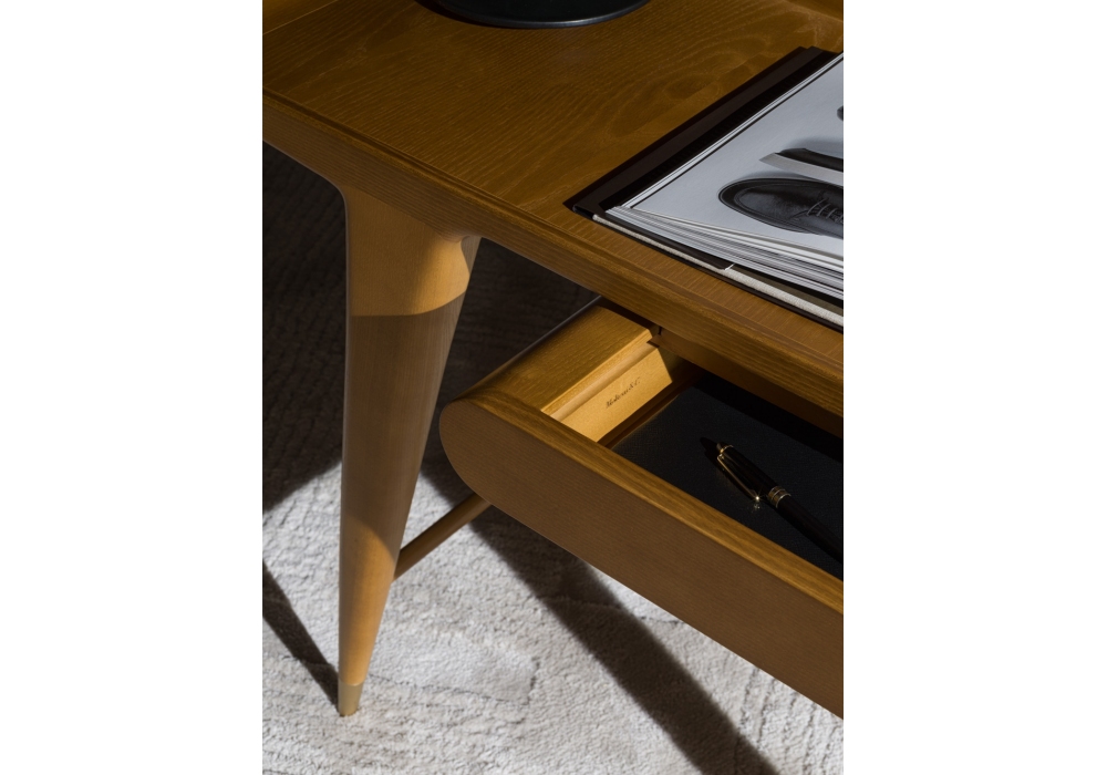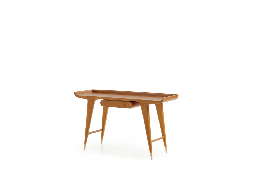 D.847.1 von Gio Ponti für Molteni&C entworfen, ist ein Schreibtisch aus massivem honiggebeiztem Eschenholz und Fuß aus satiniertem Messing.