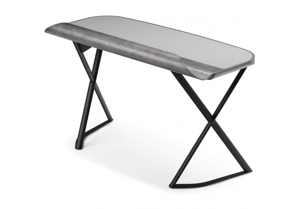 Cocoon Leather von Paolo Cattelan für Cattelan Italia entworfen, ist ein Schreibtisch mit lackiertem Stahlgestell. Top aus Leder in mehreren Farben mit Brushed Bronze oder Brushed Grey lackiertem abgerundetem Profil mit gerilltem Objekthalter aus Metall lackiert Brushed Bronze oder Brushed Grey.