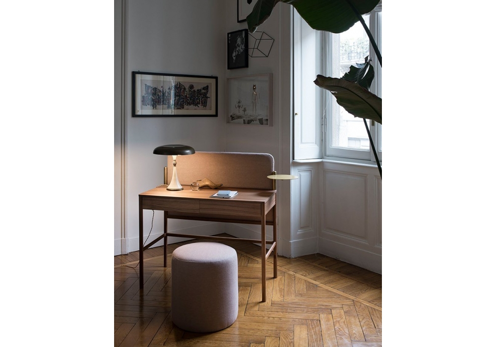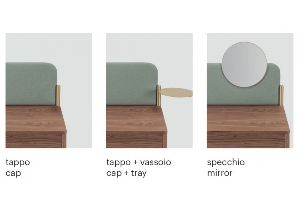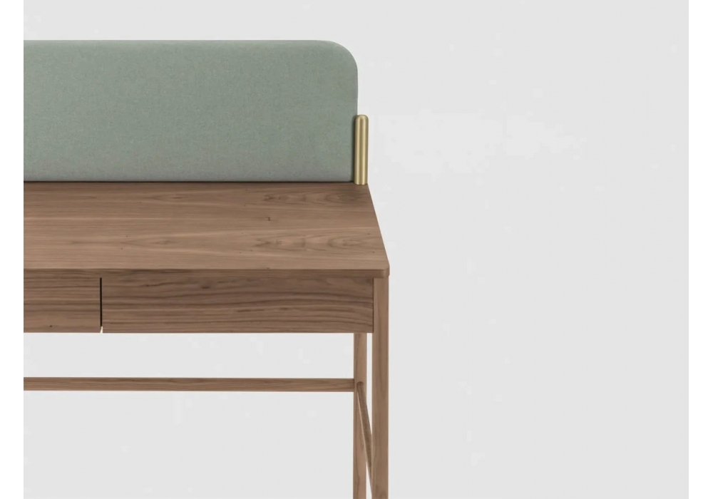 Flag von Ruga Perissinotto für Bolzan entworfen, ist ein eleganter Frisiertisch mit Holzgestell, erhältlich in Canaletto-Nussbaum oder Esche mit Eichen- oder Wenge-Oberflächen. Die Rückwand ist mit Stoff bezogen. Satinierte Messingdetails verleihen ihm einen Hauch von Klasse und Raffinesse. Die Besonderheit dieses Schreibtischs liegt in seiner Funktionalität: Er ist nicht nur ein praktischer Arbeitsplatz, sondern auch ein Schminktisch, der für diejenigen gedacht ist, die Ästhetik und Nutzen vereinen möchten.