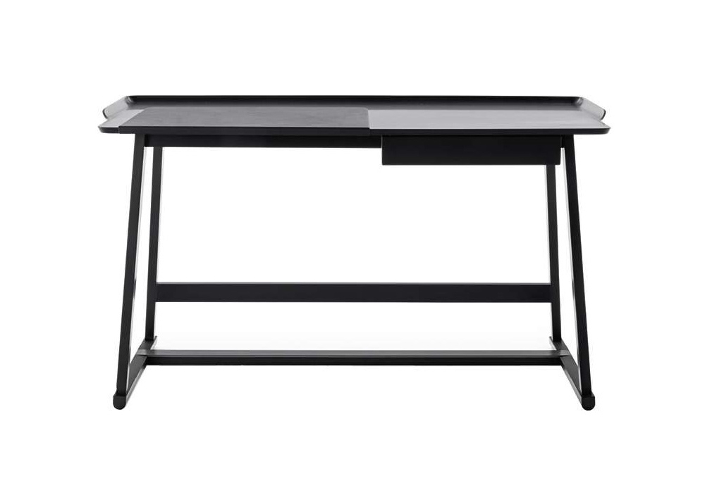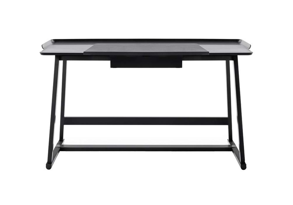 Recipio '14 von Antonio Citterio für Maxalto entworfen, ist ein Schreibtisch erhältlich mit mittlerer, linker oder rechter Schublade. Tragrahmen, Schublade und Tablett in Schwarz, Rot oder Soia-Schellack. Innenschublade und Oberteil mit Alfa-Leder bezogen. Traversenschutz im Stahlprofil.
