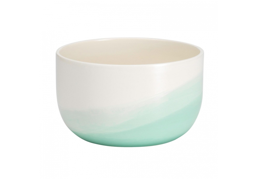 Herringbone Vessels, entworfen von Raw-Edges für Vitra, ist eine Sammlung von handgetauchten, gebeizten, glasierten Keramikschalen, Vasen und Tabletts. Die Schale ist in den Farben Minze und Sand erhältlich.