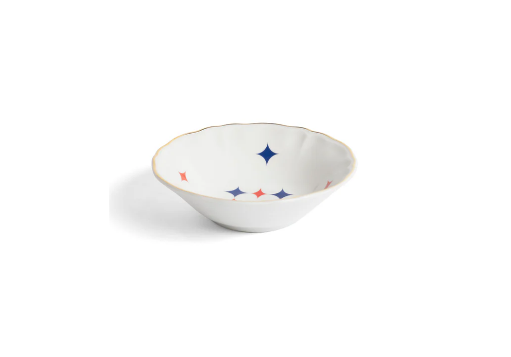 Lampo signiert von LaTigre für Bitossi Home, ist eine Porzellanschüssel mit goldenem Dekor und Details. Spülmaschinengeeignet und maximal 250 Spülgänge. Nicht für die Mikrowelle geeignet.