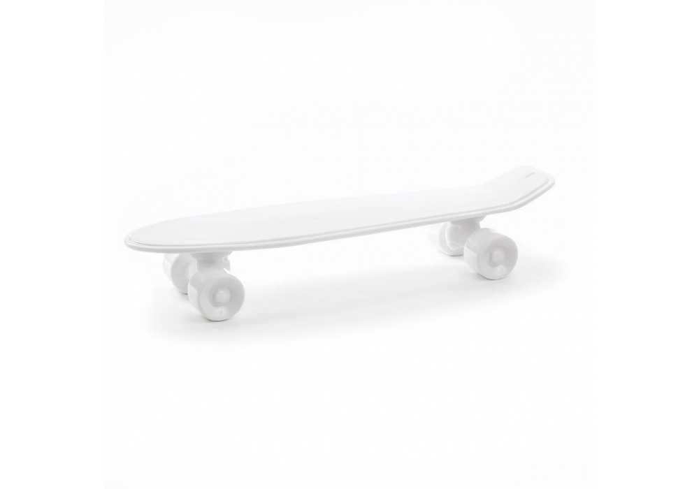 Memorabilia-Skateboard von Selab & Alessandro Zambelli für Seletti entworfen, ist ein skateboardförmiges Tablett aus Porzellan in weißer Farbe.