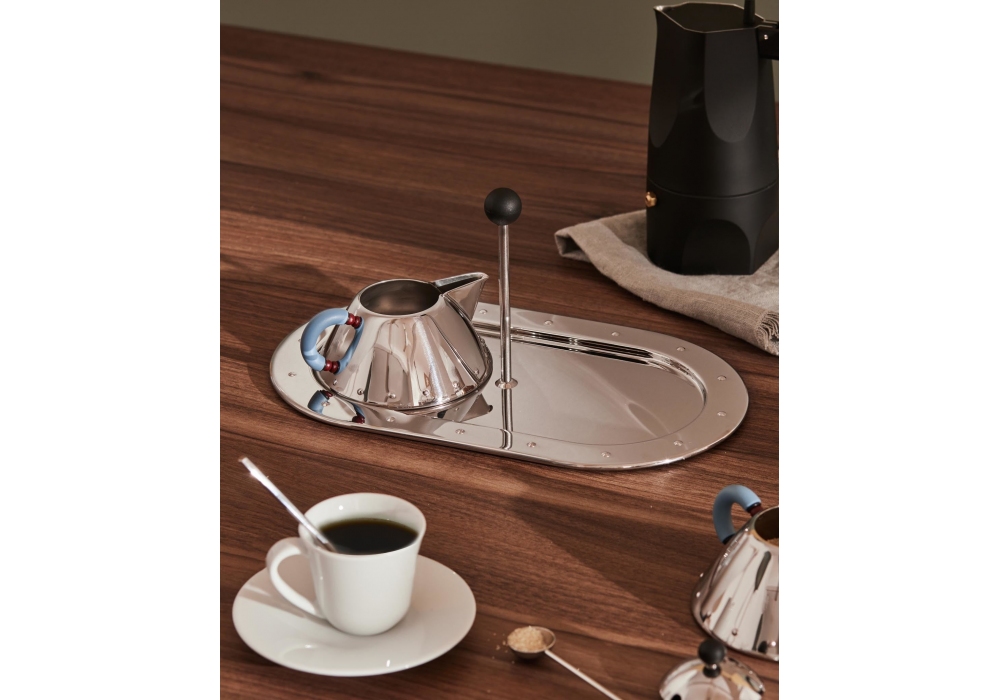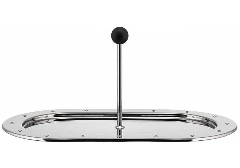 MG34 von Michael Graves für Alessi entworfen, ist ein Tablett aus Edelstahl 18/10 und schwarzem thermoplastischem Harz.