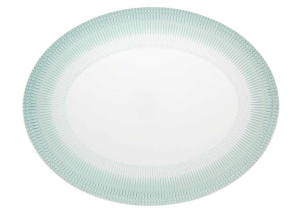 Venezia von Vista Alegre entworfen, ist ein ovales Tablett aus Porzellan mit Platindekor, das mit einem Hauch von Farbe in Degradé veredelt ist. Verfügbar in mehreren Abmessungen.