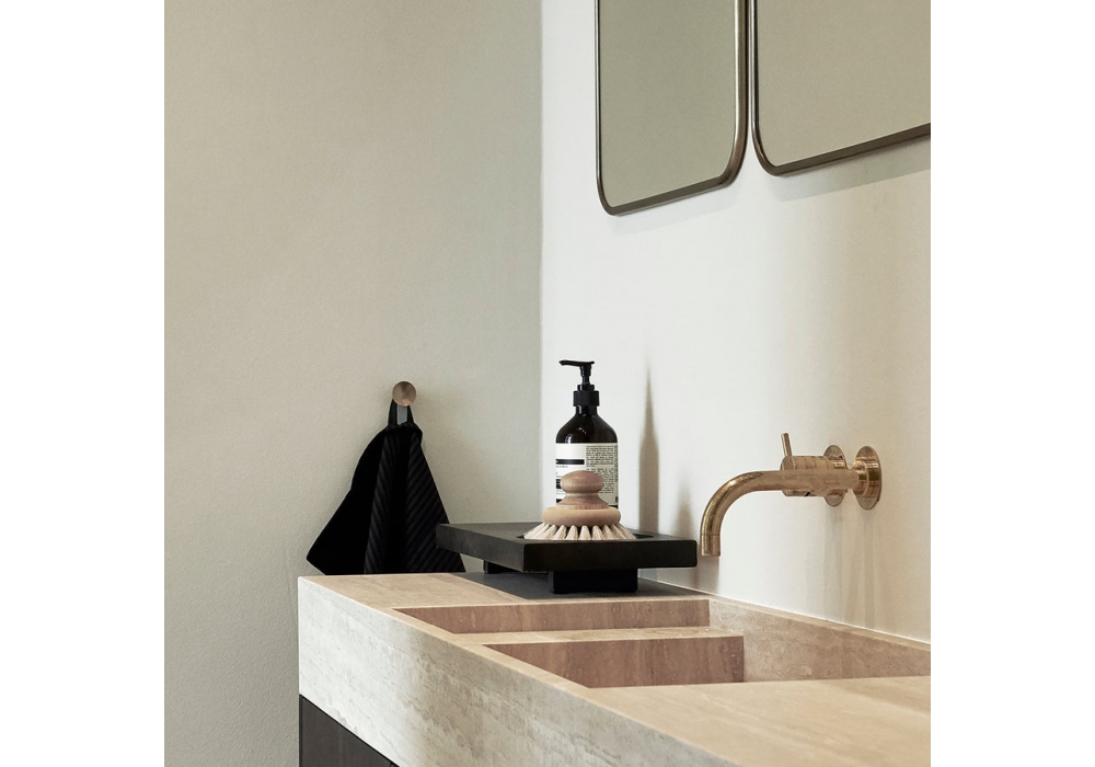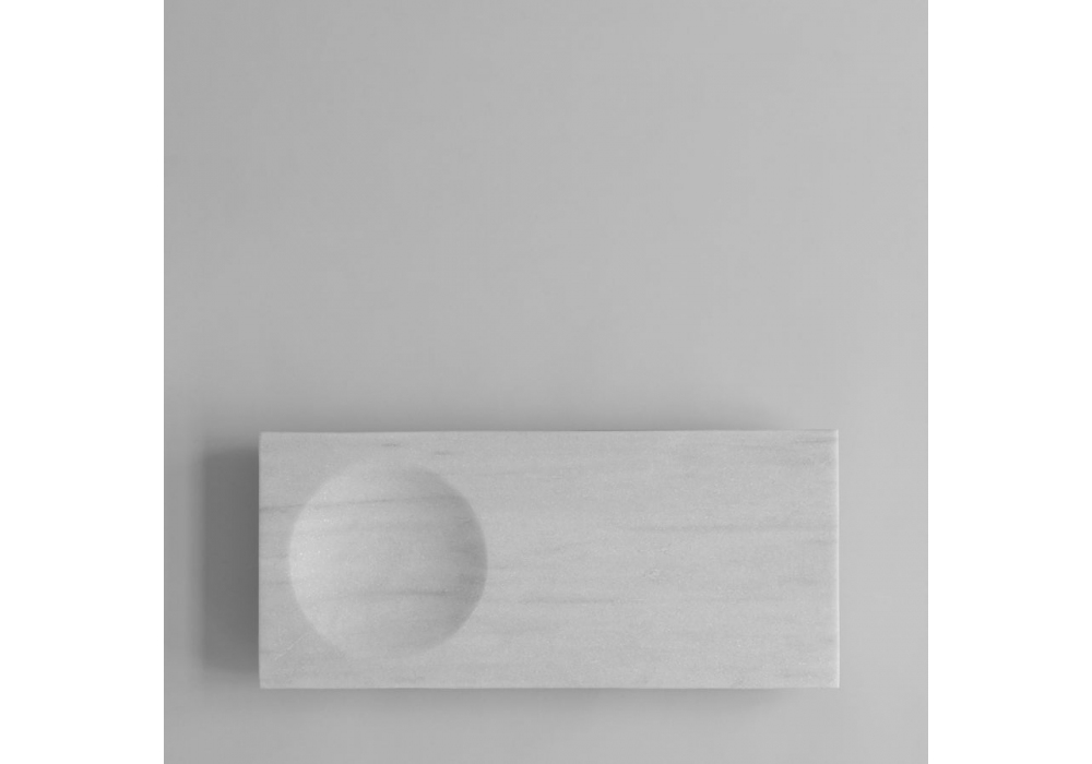 Oka von Kristian Sofus Hansen & Tommy Hyldahl für 101 Copenhagen entworfen, ist ein Tablett aus weißem Marmor oder Faserzement in Kaffeefarbe.