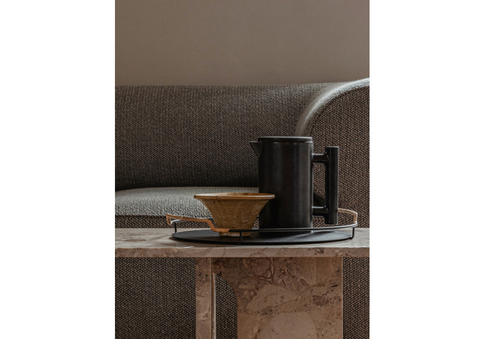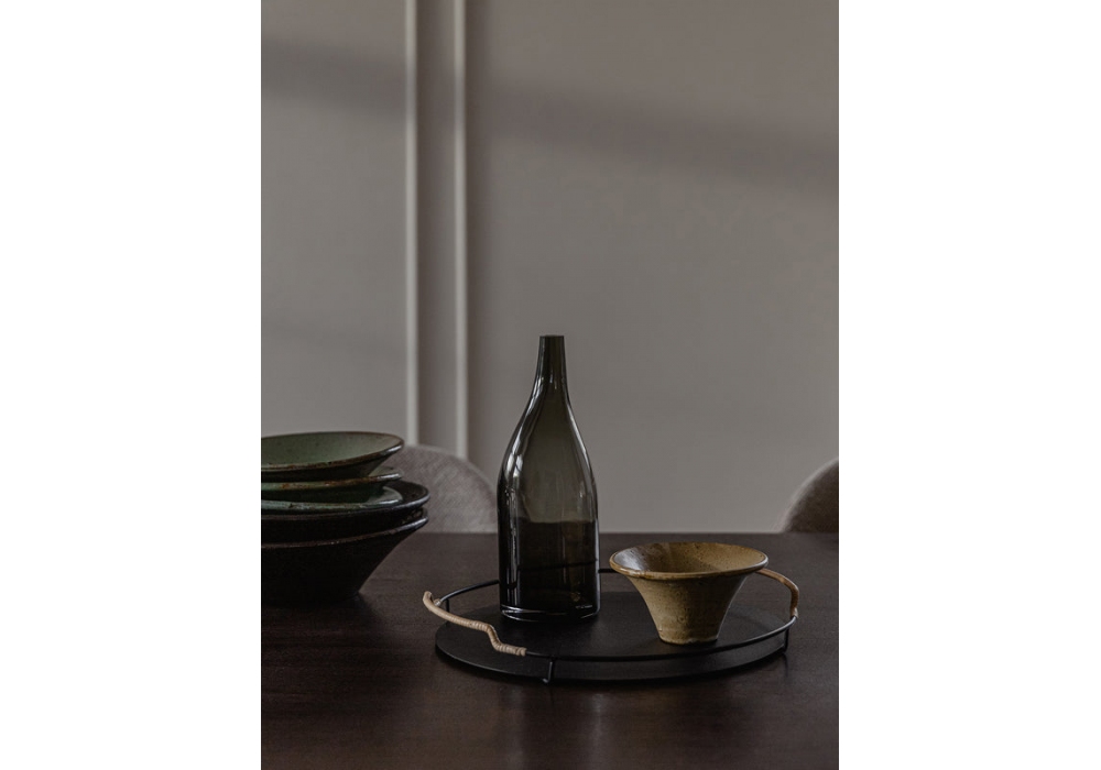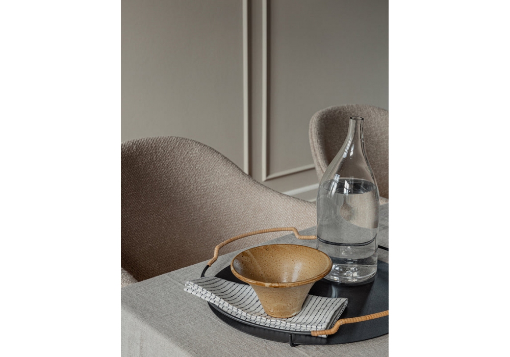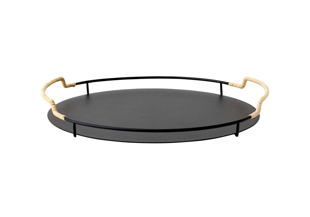Balcony von Krøyer-Sætter-Lassen für Audo Copenhagen entworfen, ist ein Tablett aus schwarz pulverbeschichtetem Stahl und mit Rattan bezogenen Griffen.