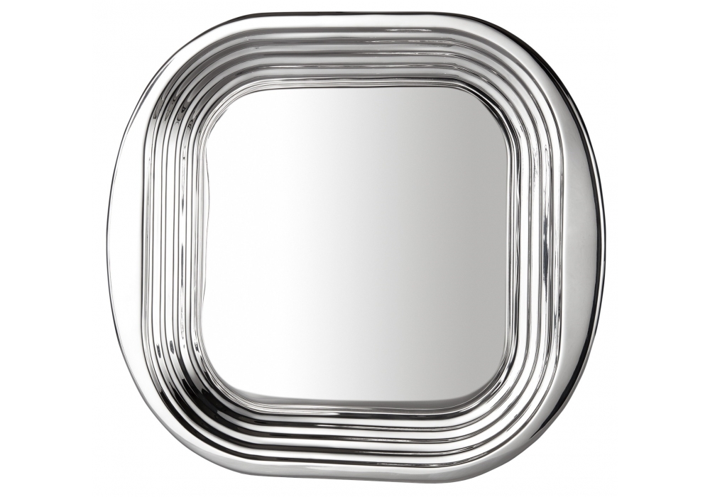 Form von Tom Dixon entworfen, ist ein quadratisches Tablett aus Edelstahl in glänzendem Silber-Finish.