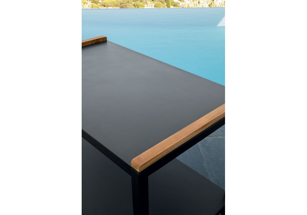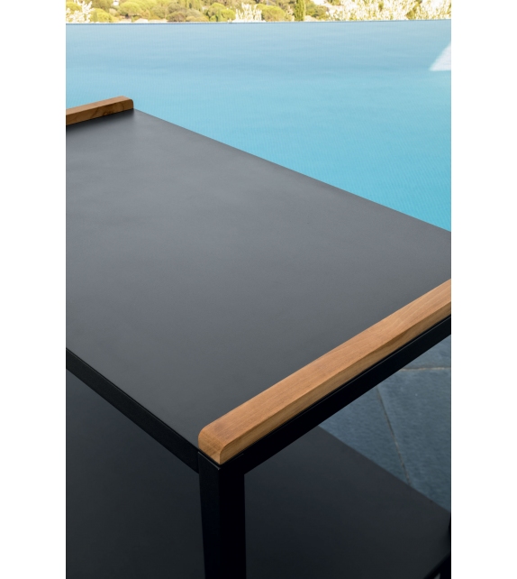 Cart der Zubehör Sammlung von Talenti ist ein Wagen mit Aluminiumstruktur in weiß oder Graphit lackiert. Top mit Teak-Einsätzen.