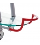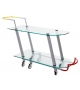 Hilton von Javier Mariscal für Memphis Milano entworfen, ist ein Servierwagen aus lackiertem Metall und geformtem Kristall mit Industrierollen.