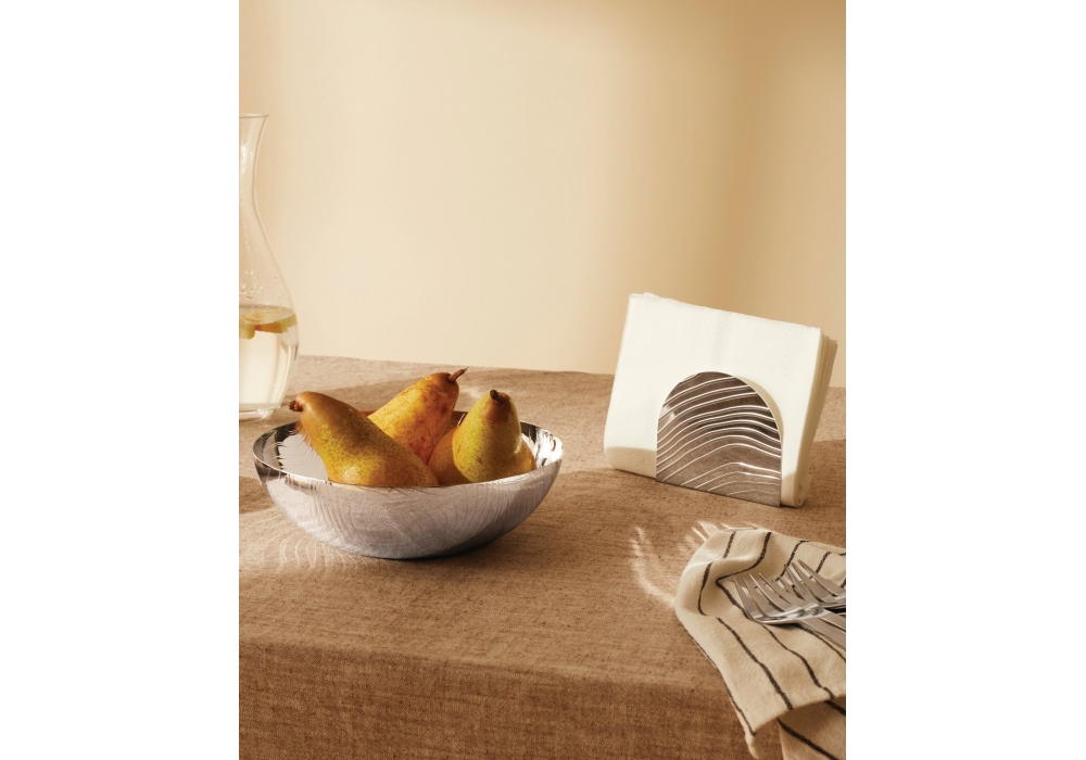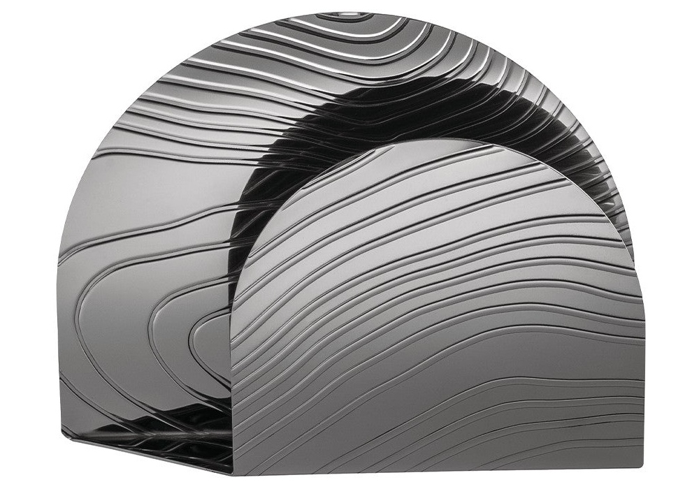 Veneer von Patricia Urquiola für Alessi entworfen, ist ein Serviettenhalter aus Stahl mit Reliefdekor, erhältlich in zwei Ausführungen.