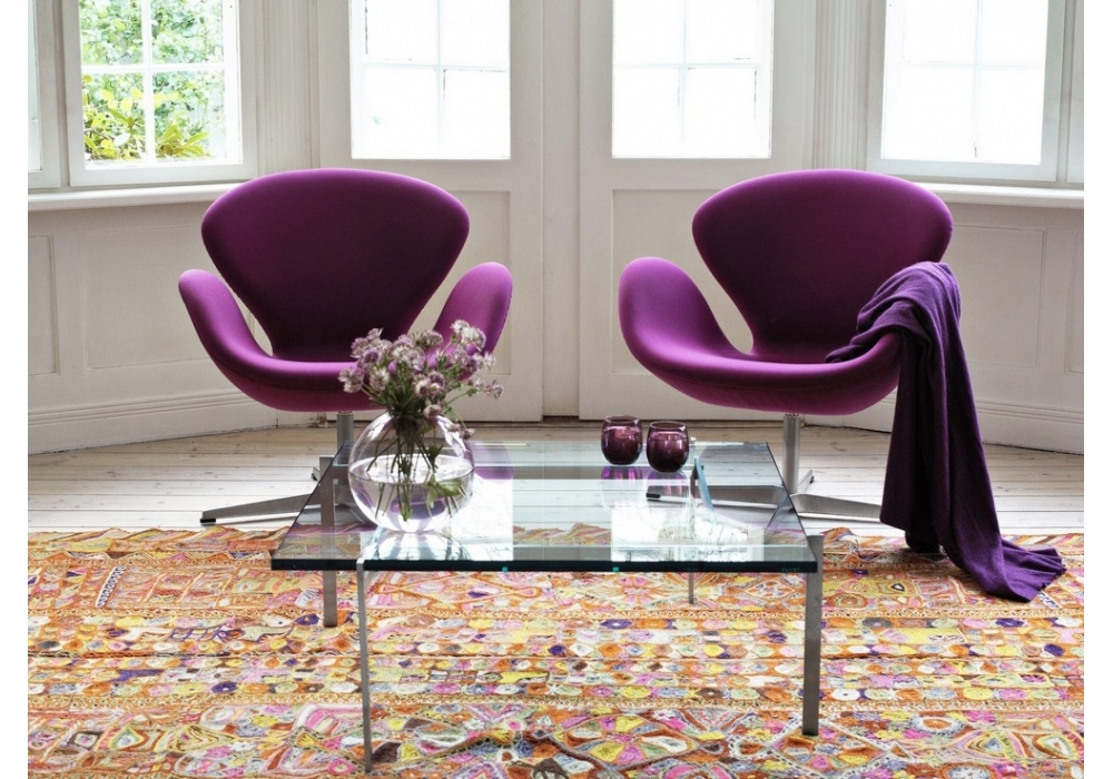Swan von Arne Jacobsen für Fritz Hansen entworfen, ist ein Drehsessel mit Stoff- oder Lederbezug und 4-Stern-Fußkreuz aus poliertem oder pulverbeschichtetem Aluminium. Verfügbar in mehreren Ausführungen.