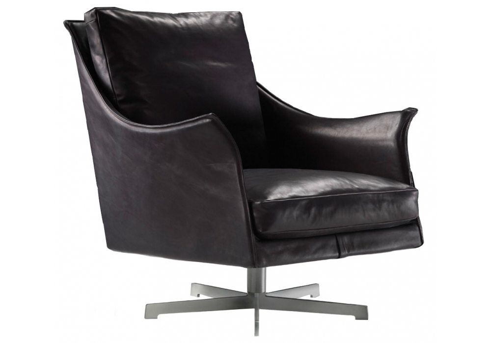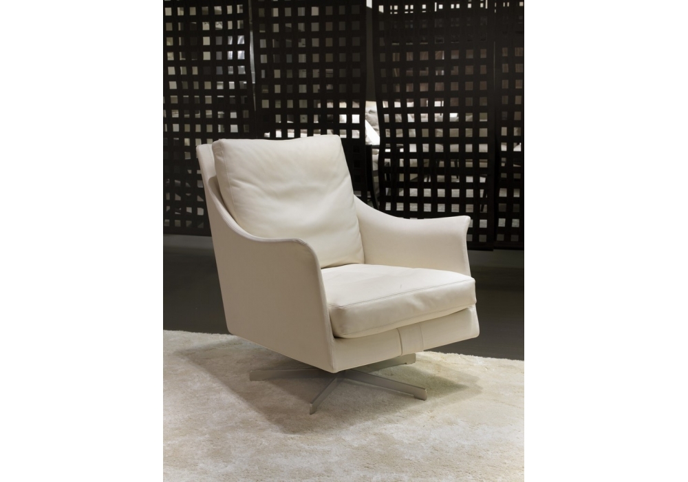 Boss von Centro Studi für Flexform entworfen, ist ein Drehsessel mit Metallgestell, Polsterung aus geformtem Polyurethan, bezogen mit schützendem, gekoppeltem Stoff. Sitzkissen aus Federn mit Einsatz aus unverformbarem Material, Rückenkissen aus Federn. Metallfüße mit Drehfuß. Abnehmbarer Bezug aus Stoff oder Leder. Verfügbar in verschiedenen Ausführungen.
