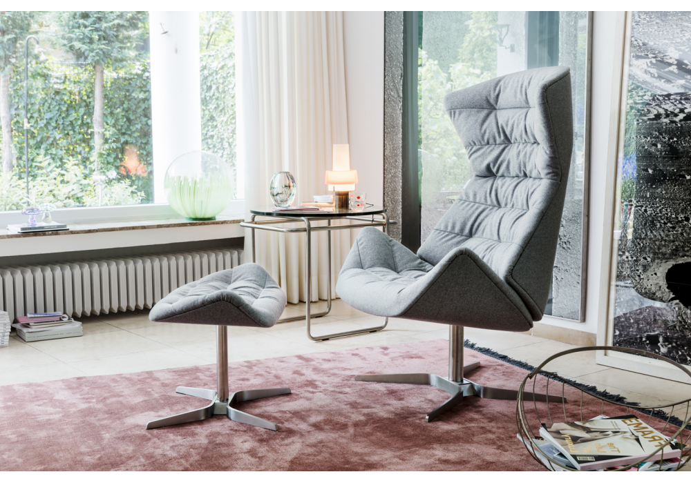 808 von Formstelle für Thonet entworfen, ist ein Sessel mit Gestell aus verchromtem Stahlrohr und Kunststofffüßen. Sitz und Rücken mit komfortabler Polsterung. Sitz-, Rücken- und Außenschalenpolsterung aus Stoff, Leder oder Fell.