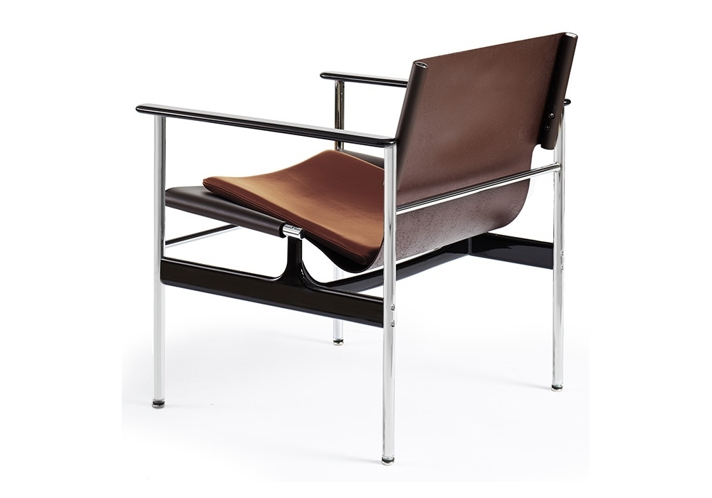 Pollock von Charles Pollock für Knoll entworfen, ist ein Sessel mit verchromter Stahlrohrstruktur, mit Armlehnen und einem schwarz lackierten Aluminiumrahmen. Stahlfüße. Gurte mit Lederbezug in drei verschiedenen Farben. Kissen aus Polyurethangummi mit Lederbezug.