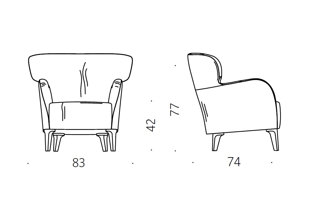 Albereta von Philippe Nigro für Depadova entworfen, ist ein Sessel mit Stahlstruktur mit elastischen Gurten, Füßen aus massiver Esche und Polsterung aus Polyurethanschaum. Die Polsterung ist in verschiedenen Ausführungen erhältlich, sie ist aus Stoff abnehmbar oder in Leder oder Samt befestigt.