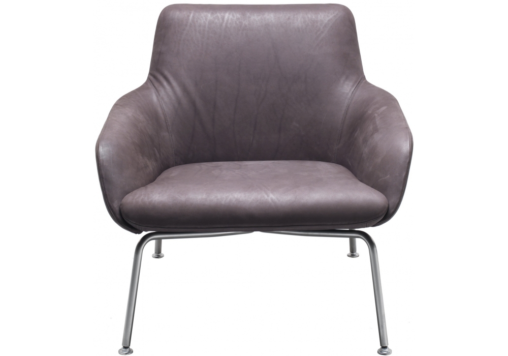 Reader designed by Piergiorgio & Michele Cazzaniga for Living Divani is an armchair with steel frame embedded in cold-expanded polyurethane foam with Visco-soft “Xtra-pur” insert and seat support in cross-woven, coated rubber elastic straps. Covering in needle punched, resinated, nonwoven polyester fibre, bonded onto a polyamide velveteen backing. Fixed base in matt satined AISI 304 stainless steel or in steel painted with epoxy powders in black or gunmetal grey. Fabric or leather upholstery, the fabric version only is fully removable by zippers and Velcro fastenings. Seat depth 57cm.